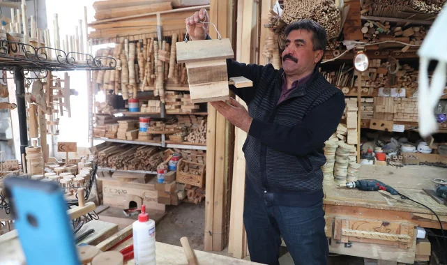 Denizlili iş adamı ahşaptan yaptığı 160 kuş yuvasını belediyeye bağışladı