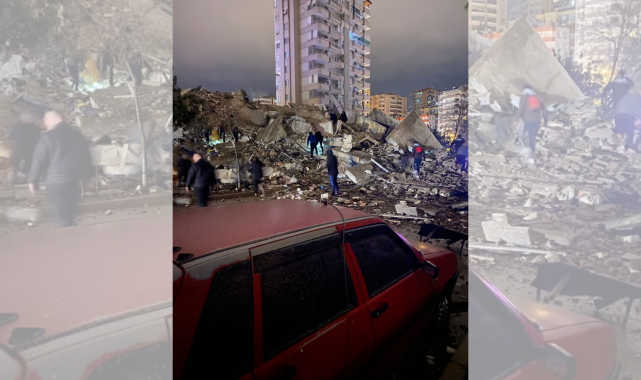 Adana Belediye Başkanı Zeydan Karalar: Biri 17 diğeri 14 katlı olmak üzere ilk belirlemelere göre 3 apartman tamamen yıkıldı. Ekipler buraya gelemiyor. Lütfen vatandaşlarımız yolları boşaltsın.