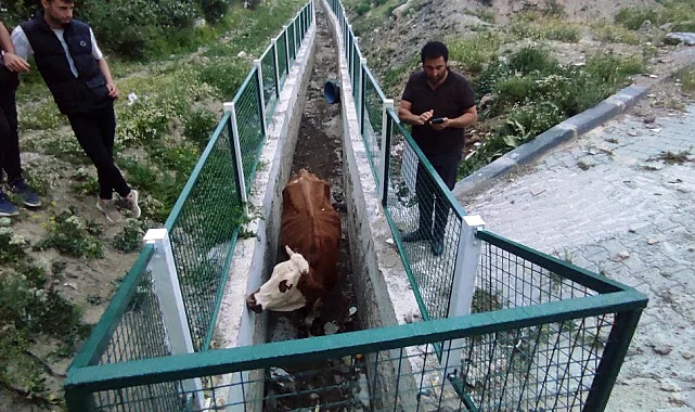 Dere yatağına giren hayvanların sahibi İbrahim Coşkun ise, "Hayvanlar otlanırken dere yatağına girmiş ve çıkamamışlar. Belediyeden ve itfaiyeden yardım istedik, vinç yardımıyla hayvanları çıkarttık" dedi.