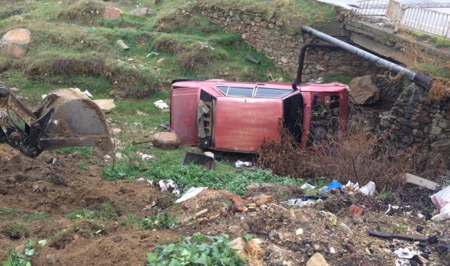 Dereye uçan araçtan yara almadan kurtuldu