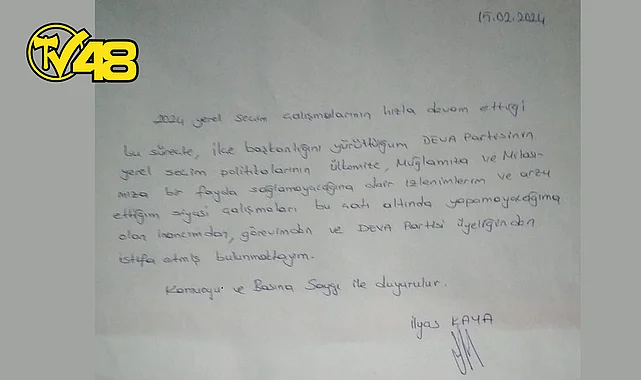 Deva Partisi Milas İlçe Başkanı İlyas Kaya, hem görevinden hem de partisinden istifa etti.
