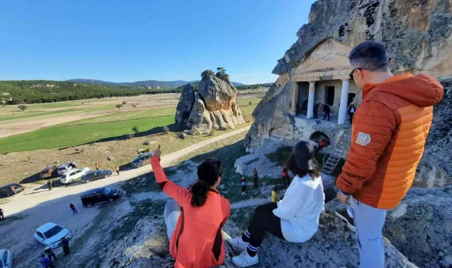 Eskişehirli doğa tutkunları iftar-doğa etkinlikleri çerçevesinde belirledikleri güzergahta Yazılıkaya ve civardaki türbeleri gezdikten sonra iftarlarını Kümbet Mahallesi'nde yaptı.