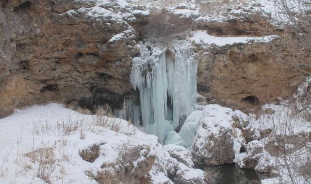 Doğu Anadolu Bölgesi'nde soğuk hava etkisini sürdürürken şelale, göl ve akarsular buz tuttu.