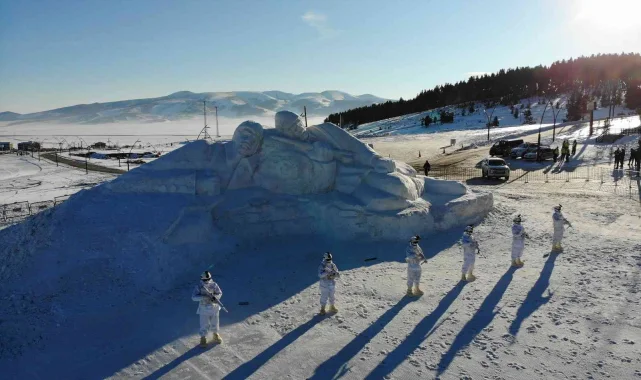 Cıbıltepe Kayak Merkezi'nin 1. etap oteller bölgesinde yapımı tamamlanan, Allahu Ekber Dağlarında donarak şehit olan askerlerin anısına tasarlanan kar heykelleri ilçe çevresinden 200 kamyon kar taşınarak yapıldı.