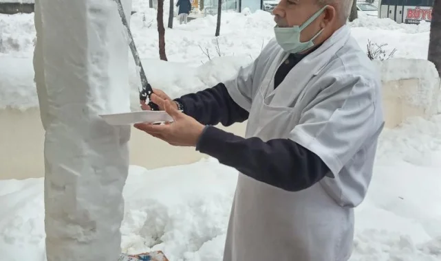 Onikişubat ilçesi Akif İnan Mahallesi'nde döner ustası Şahin Başkasap, bölgeyi etkisi altına alan kar yağışı sonrası 'karsambaç döner' yaptı.