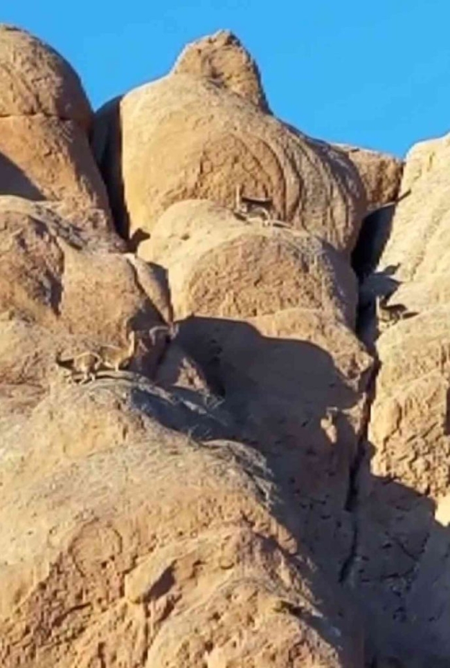 Bu özellikleri sayesinde nadir olarak görülen yaban keçilerini fark eden Bucak Köyü Muhtarı Fatih Durna o anları kayıt altına aldı.