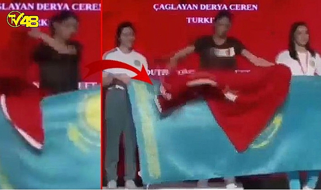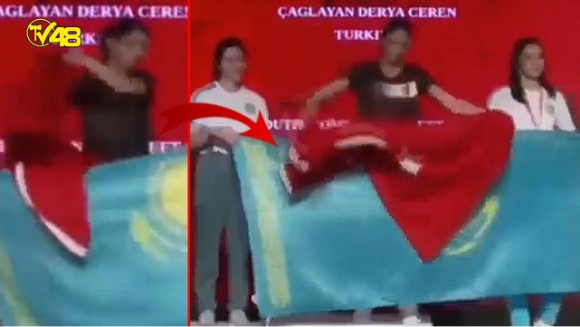 Türk bayrağını kapatmaya çalışan Kazak sporcuların davranışlarını engelleyen sporcumuz Derya Ceren Çağlayan'ın o hamlesi ödül törenine damga vurdu.
