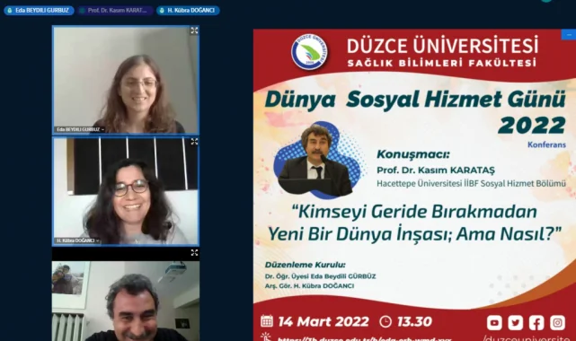 DÜZCE(İHA) – Düzce Üniversitesi Sağlık Bilimleri Fakültesi Sosyal Hizmet Bölümü tarafından düzenlenen Dünya Sosyal Hizmet Günü 2022 başlıklı program, çevrim içi olarak gerçekleştirildi.