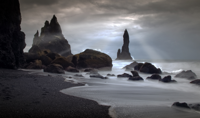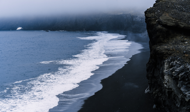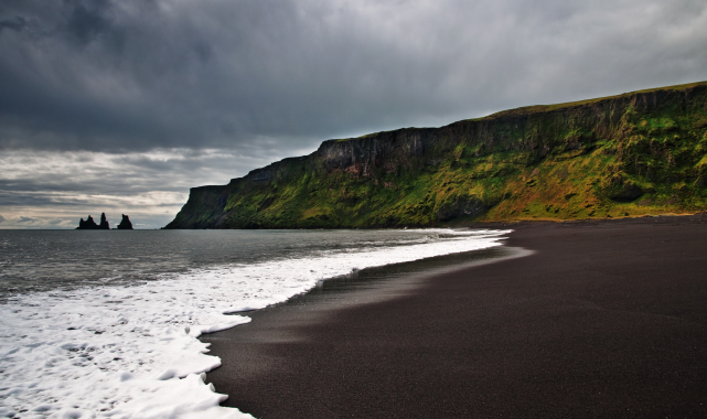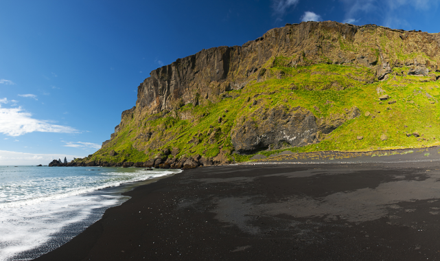 Lav bazaltlarının suya inip çok hızlı soğumasından dolayı plajdaki kumlar siyahtır.