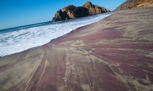 Kaliforniya, Amerika'da bulunan bu kumsaldaki kumlar mor renkte. Sebebi de kayalardan çıkan manganez granatlar.