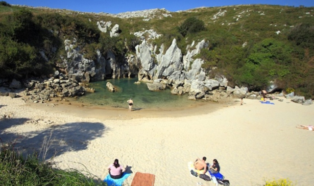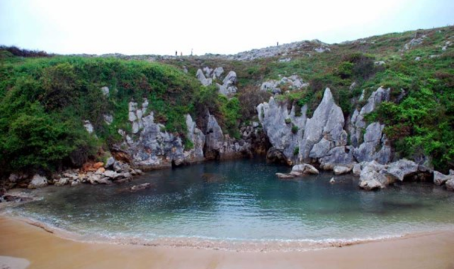 Bu plaj Playa De Gulpiyuri, Llanes, İspanya'da yer almaktadır. Bu küçük yer Atlantik yeraltı su yollarına bağlantılı. Özel piknik için mükemmel.