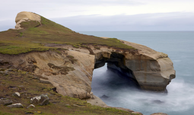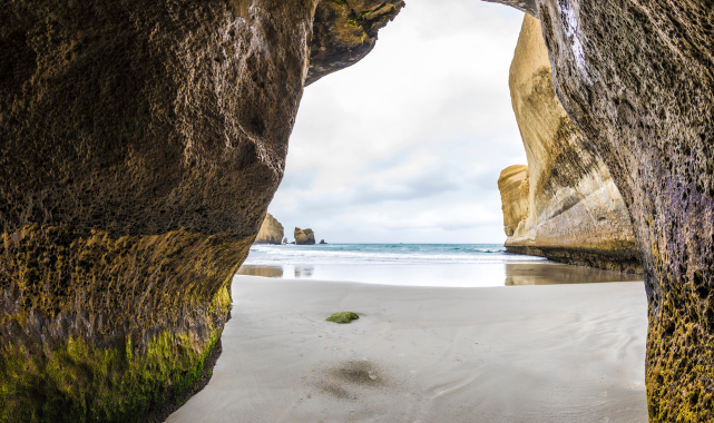 Ziyaretçiler Dunedin, Yeni Zelanda'da bulunan bu plaja ulaşmak için uzun tüyler ürpertici tünelden geçmek zorunda.