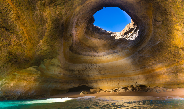 Bu inanılmaz mağara gibi plaj Algarve, Portekiz'de yer almaktadır