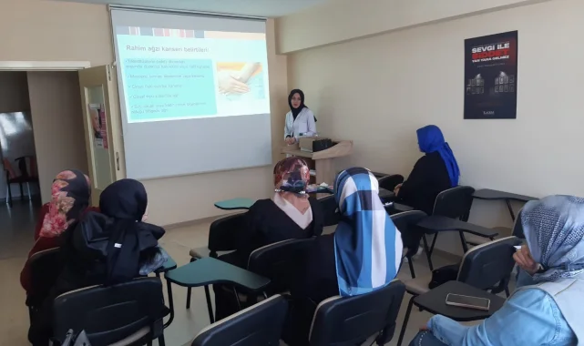 Düzce Sağlık Müdürlüğü Halk Sağlığı Hizmetleri Başkanlığı ekiplerince kanser hastalığı konusunda bilgilendirme, bilinçlendirme ve farkındalık oluşturmak amacıyla eğitim düzenlendi. Kanser Erken Teşhis, Tarama ve Eğitim Merkezleri (KETEM) biriminde görevli Dr. Elif Nur Dalkıran Ekşi tarafından kadınlara yönelik kanserde erken teşhisin önemi, kanser türlerinin risk faktörleri, belirtileri, tanı ve tedavi yöntemleri, kanserden korunma yolları, sağlıklı yaşam konularında bilgilendirmelerde bulunuldu.