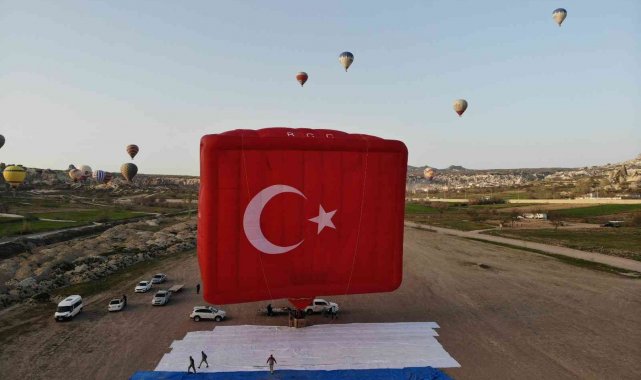 Kapadokya'da üretilen dünyanın en büyük Bayrak Balonu Kapadokya'da havalandı. Yaklaşık iki ay gibi bir sürede üretilen ve üzerinde Türk Bayrağı figürü bulunan Bayrak Balon, dünyanın en büyük Bayrak Balonu unvanını da almış oldu.