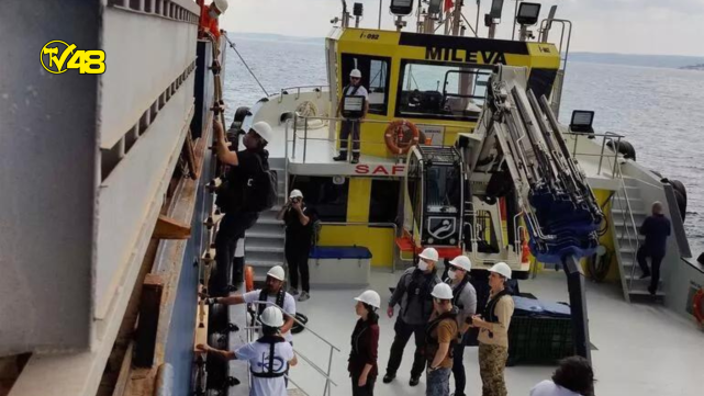 Buradan Mileva ve Gözcü 1 isimli botlara binen heyet, tahıl yüklü gemi Razoni'ye doğru hareket etti. Yaklaşık yarım saat süren yolculuğun ardından heyet gemiye ulaştı. Gemi çevresinde sahil güvenlik helikopterleri ve botları da güvenlik önlemi aldı.