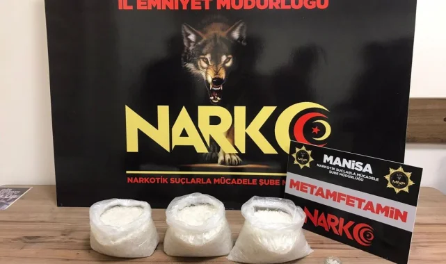 Manisa İl Emniyet Müdürlüğü Narkotik Suçlarla Mücadele Şube Müdürlüğü ve İstihbarat Şube Müdürlüğü görevlilerince uyuşturucu veya uyarıcı madde ticareti yapan, nakleden ve kullanan şahıslara yönelik yapılan çalışmalar çerçevesinde durdurulan bir araçta yapılan aramada, 4 parça halinde toplam 3 kilo 23 gram metamfetamin maddesi ile uyuşturucu madde ticaretinden elde edildiği değerlendirilen 34 bin TL ele geçirildi. Konuyla ilgili 2 şüpheli şahıs uyuşturucu veya uyarıcı madde imal ve ticareti yapmak suçundan gözaltına alınarak haklarında adli işlemlere başlanıldığı öğrenildi.