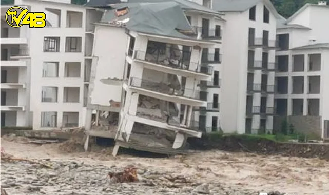 Yağışların yoğun bir şekilde devam ettiği Karadeniz bölgesindeki bir çok ilden görüntüler gelmeye devam ediyor. Son gelen görüntüler ise Düzce'den, Beyköy ilçesinde yapımı devam eden bir binada çökme meydana geldi.
