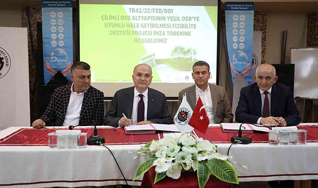 DÜZCE(İHA) – Düzce'nin Çilimli ilçesi kurulacak olan Organize Sanayi Bölgesi'nin (OSB) altyapısının Yeşil OSB'ye uygun hale getirilmesi fizibilite desteği projesi imza töreni gerçekleştirildi.