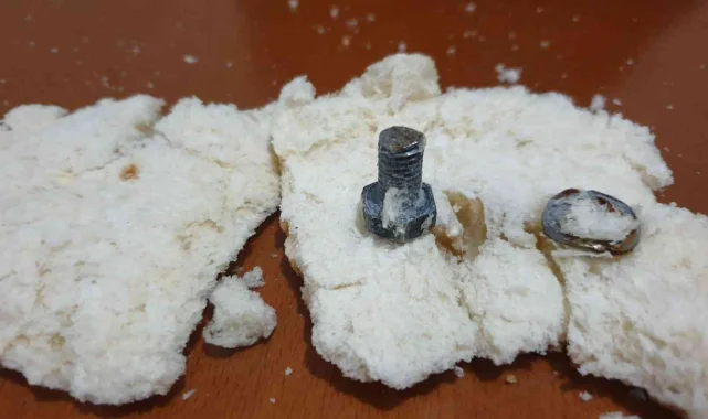 Denizli'de bakkaldan aldığı ekmeği yemek için böldüğü sırada içinden 2 santimetre uzunluğunda vida çıktığını gören vatandaş, büyük bir şok yaşadı. Ulaştığı fırın yetkilisinden aldığı cevapla şaşkınlığı daha da artan vatandaş, derdini anlatabilmek için ekmeği saklamaya başladı.