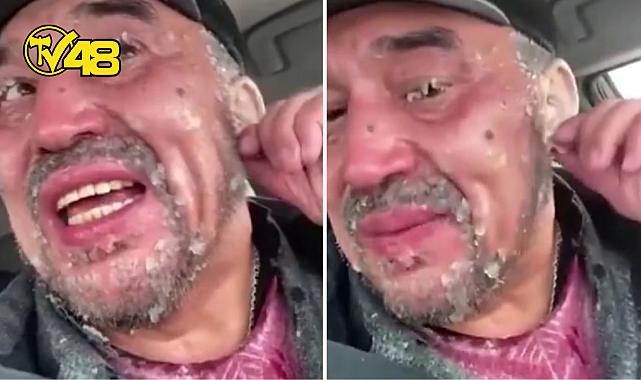 Kulakları ve kirpikleri buz tutan adam vücut uzuvlarını kaybetme tehlikesiyle karşı karşıya kalırken arabaya sığınmasının ardından o anları cep telefondan kaydederek sosyal medya üzerinden paylaştı.