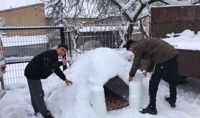 Karın keyfini çıkarmak için kardan ev yaptıklarını ifade eden Ali Osman Omaç, "3 arkadaş yağan karın keyfini çıkarmak için bir karar aldık. Evimizin önüne kardan ev yapmayı düşündük. Bir buçuk saatte kardan evimizi yaptık. Evimiz bir metre yükseklikte ve bir buçuk metre genişliğinde. Mahallemizde yaşayanlar evimizi çok sevdi. Bizleri tebrik ettiler" dedi.