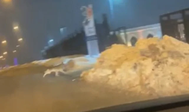 Elazığ'da aç kalan kurt şehir merkezine indi, o anlar sürücünün cep telefonu kamerasına yansıdı.