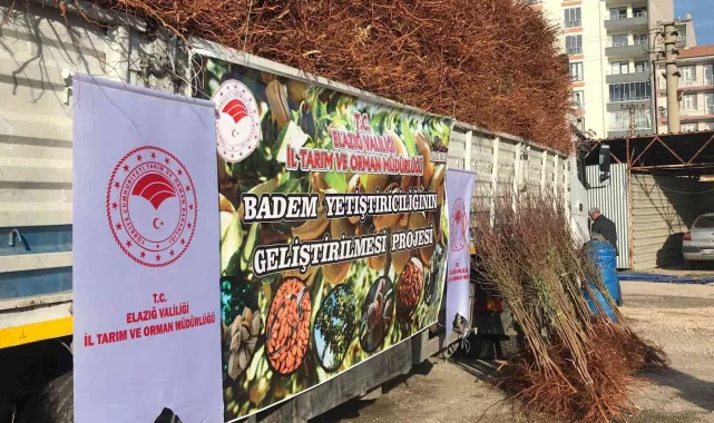 Elazığ'da 'Badem Yetiştiriciliğinin Geliştirilmesi' projesi kapsamında çiftçilere 68 bin 500 adet badem fidanı dağıtıldı.