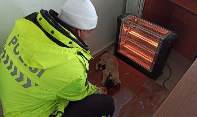 Elazığ'ın Baskil ilçesinde kar altında donmak üzere olan yavru köpeği trafik polisleri kurtardı. Polis kulübesine alınan köpek, elektrikli ısıtıcı ile ısındı.