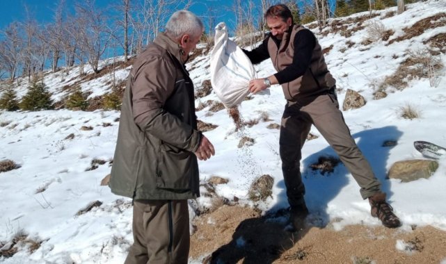 Elazığ'da yaban hayvanları için doğaya yem bırakıldı