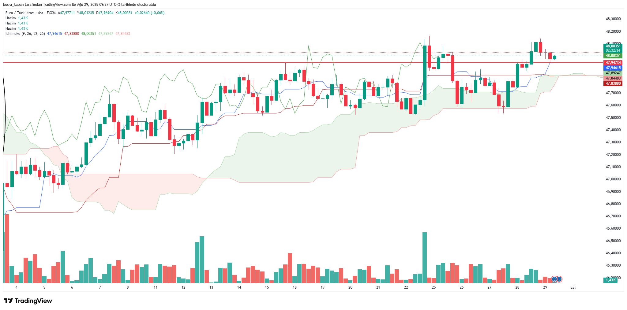 Euro/TL'de yukarı yönlü hareketlenmelerin olduğu görülüyor. Euro/TL geçtiğimiz gün 48 lira seviyesine kadar yükseldi. Bugün ise sabah seansında 09.25'te 47,97 seviyesinde bulunuyor.