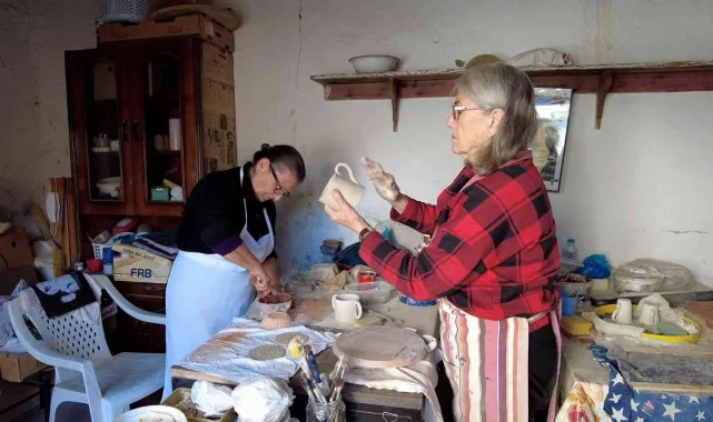 Foça ilçesi Bağarası Mahallesi'nde emekli öğretmenler Nuraydın Kurtul ve Leyla Buhara, emekliliği evde oturarak geçirmek istemedi. Yolları emekli olduktan sonra kesişen ve seramik sanatına merak saran iki kadın, bir atölyede çalışmalara başladı.