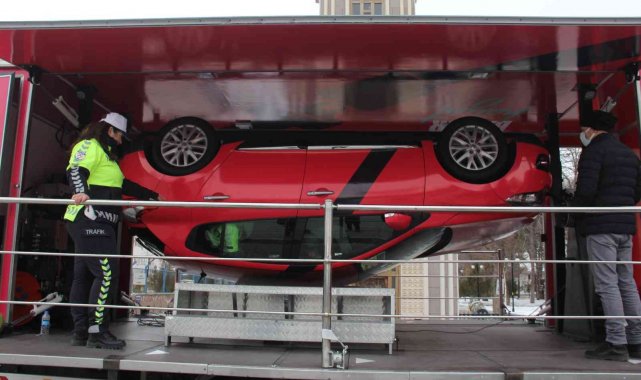Erzincan İl Emniyet Müdürlüğü Trafik Denetleme Şube Müdürlüğü ekipleri trafik kazalarında ki ölüm ve yaralanmaların en aza indirilmesi, vatandaşların bilinçlendirilmesi için çalışmalarına aralıksız devam ediyor. Ordu Caddesi üzerinde yapılan eğitimde emniyet kemerini kullanmayan sürücüler simülasyon aracına bindirilerek, emniyet kemerinin önemi uygulamalı olarak gösterildi. 5 kilometrelik bir hızla meydana gelen kaza sırasında, takla atan bir araç içerisinde bulunan sürücü ve yolcuların emniyet kemeri takılı haldeyken içinde bulundukları durum ile kemersiz olarak yaşadıkları araç içerisinde gösterildi. Gerçek bir kaza meydana gelmiş gibi araç içerisinde sağa sola savrulan kemersiz vatandaşlar kemer takmanın önemini uygulamalı olarak anladı.