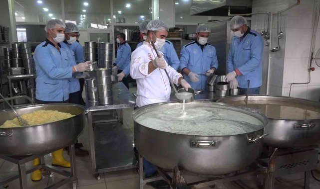 Van'ın Erciş Kaymakamlığı Sosyal Yardımlaşma ve Dayanışma Vakfı bünyesinde hizmet veren aşevi, Ramazan'da günlük 800 aileye 3 çeşit yemek çıkarıyor.
