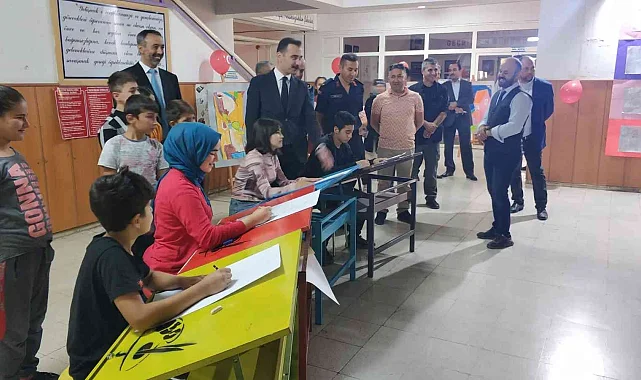 Karaman'ın Ermenek ilçesinde Fikret Ünlü Yatılı Bölge Ortaokulunda yılsonu resim sergisi açıldı.