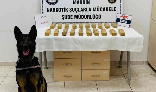 Mardin Cumhuriyet Başsavcılığı'nın talimatıyla, Mardin İl Emniyet Müdürlüğü'ne bağlı Narkotik Suçlarla Mücadele Şube Müdürlüğü'nün yaptığı çalışmalar neticesinde, Mardin girişinde durdurulan hafif ticari aracın yedek lastiğinin içine gizlenen 10 kilogram 400 gram eroin maddesi ele geçirildi. Konuyla ilgili 1 şüpheli gözaltına alınarak çıkarıldığı mahkemece tutuklandı.