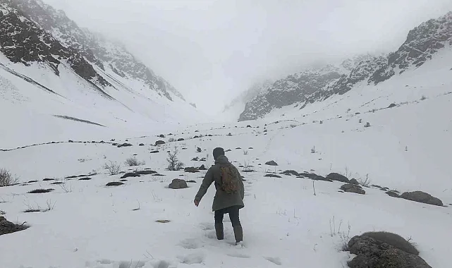 Otlukbeli ilçesinin meralarında koyun sürüsünü otlatan bazı çobanlarda kara hazırlıksız yakalandı. Kar altında sürü otlamaya devam etti.