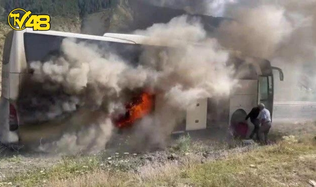 ERZURUM'A GİDEN YOLCU OTOBÜSÜ CAYIR CAYIR YANDI!