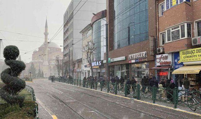 Eskişehir'de öğle saatlerinde başlayan kar yağışı aralıklarla devam ediyor.