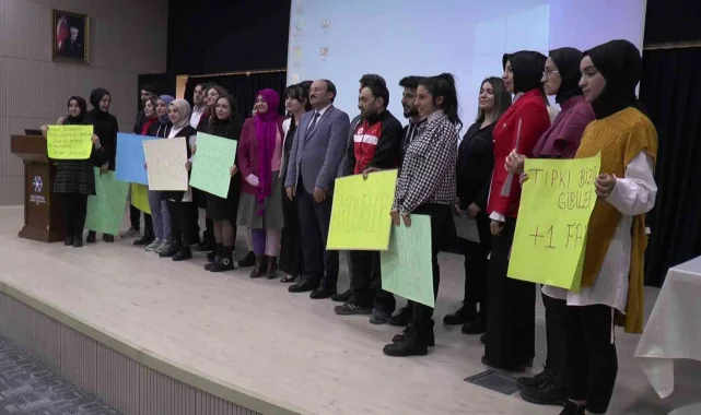 Konuşmalardan sonra öğrenciler günün önemini anlatan pankartlarla sahneye gelerek birlik mesajı verdiler.