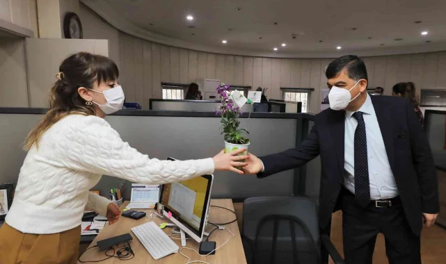 Şehitkamil Belediye Başkanı Rıdvan Fadıloğlu, 8 Mart Dünya Kadınlar Günü dolayısıyla kadın personelleri çalıştıkları birimde ziyaret ederek çiçek armağan etti.