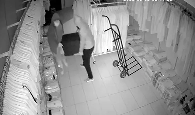 Fatih'te bir tekstil mağazasına giren hırsızlar, içerisinde 11 milyon TL değerindeki onlarca dolar bulunan çelik kasayı çaldı. Gerçekleşen hırsızlık anı ve hırsızların çelik kasayı güçlükle taşıdığı o anlar iş yerinin güvenlik kamerasına yansıdı.