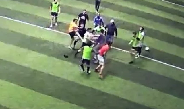 Maç esnasında yapılan faul sonrasında sahanın biranda karışarak adeta boks ringine döndüğü anlar ise güvenlik kamerasınca kaydedildi. Görüntülerde; yapılan faulün ardından iki grubun birbirine girdiği anlar yer alıyor. Sahanın karıştığını gören diğer vatandaşların olayı ayırmak için içeriye girmesi ve kavganın bir türlü son bulmaması üzerine ise halı saha işletmecisinin ışıkları kapatması görüntülere yansıdı.