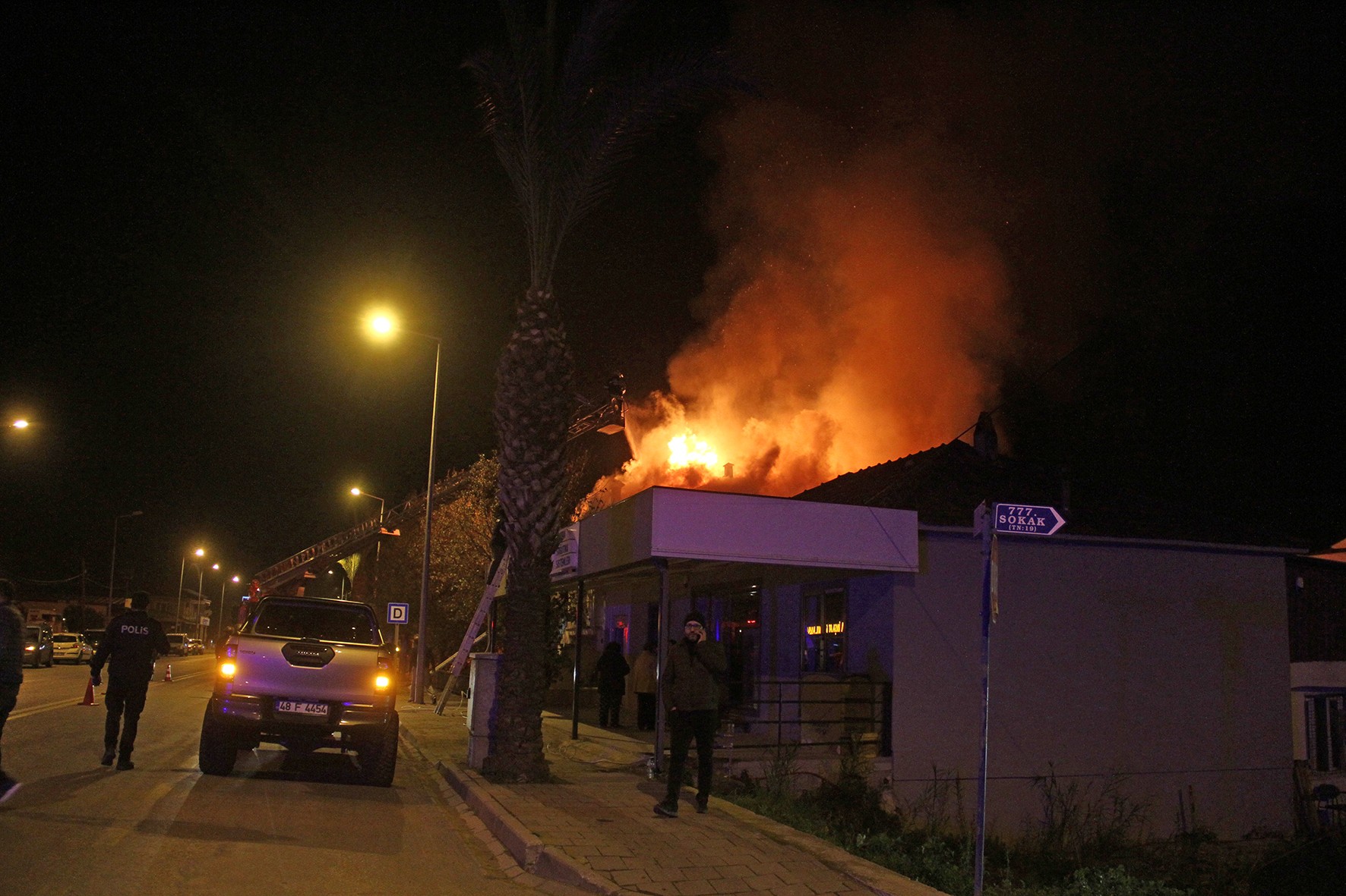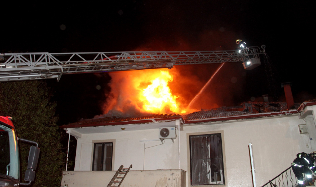 Fethiye'de 2 katlı evin çatısı alev alev yandı.
