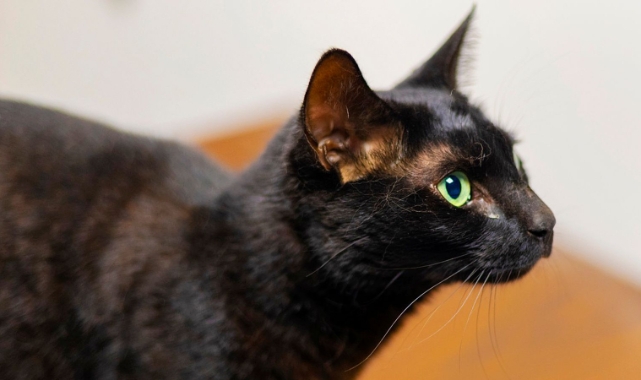 Siyah yeşil gözlü kedi sağlık kontrolünden geçirildi ve şimdi ailesinin yanına dönmeye hazırlanıyor.