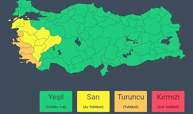 Bakanlığın sosyal medya hesabından yapılan açıklamada, " Meteoroloji Genel Müdürlüğü'nden alınan son bilgilere ve yapılan değerlendirmelere göre; fırtına nedeniyle Muğla, Aydın, İzmir illerimiz için turuncu, Çanakkale, Balıkesir, Manisa, Kütahya, Uşak, Denizli, Afyonkarahisar illerimiz için sarı uyarı verilmiştir. Cuma günü sabah saatlerinden sonra Güney Ege'de, öğle saatlerinden itibaren Kuzey Ege ile Balıkesir'in batısı ve Çanakkale'de güney ve güneydoğu yönlerden kuvvetli rüzgar ve fırtına (50-80 kilometre/saat), İzmir, Aydın ve Muğla illerinin batı ve yüksek kesimlerinde yer yer kuvvetli fırtına (70-90 kilometre/saat) olması bekleniyor" denildi. Açıklamada, vatandaşların ulaşımda aksamalar, çatı uçması, ağaç devrilmesi, toz savrulması gibi olumsuzluklara karşı dikkatli ve tedbirli olması uyarısında bulunuldu