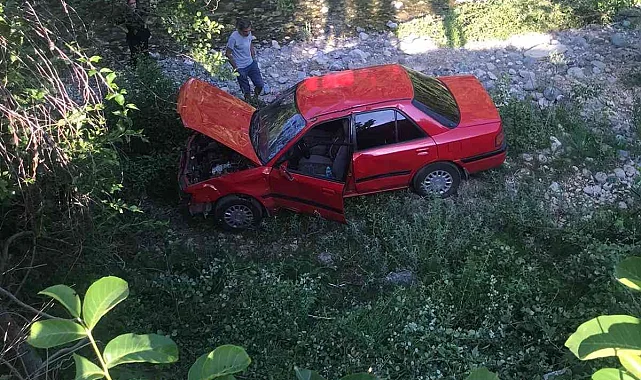 Denizli'nin Çameli ilçesinde sürücüsünün fren yerine gaza bastığı otomobil çaya uçtu.