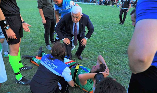 19 Mayıs Atatürk'ü Anma, Gençlik ve Spor Bayramı kutlamaları nedeniyle Datça'da olan ve futbol müsabakasını izlemeye giden Ortopedi Uzmanı Doktor Büyükşehir Belediye Başkanı Osman Gürün, sakatlanan oyuncuya sahada ilk müdahaleyi yaptı.