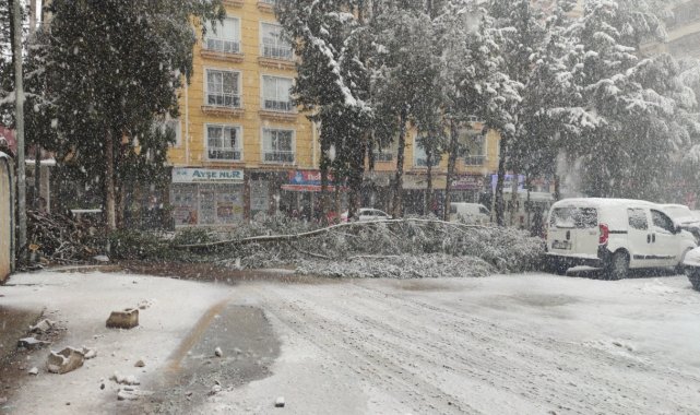 Gaziantep'te yoğun kar yağışı nedeniyle ağaçlar devrildi