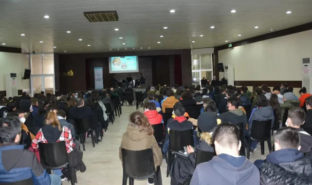 Gediz Belediye Kültür Salonunda ilçe geneli ortaokul ve Lise düzeyindeki öğrencilerle buluşan Mehmet Şansal Teknofest yolundaki deneyimlerini öğrencilerle paylaştı.